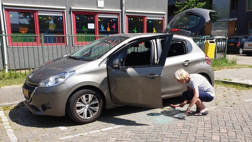 ALPHEN AAN DEN RIJN - 'Schandalig dat er zoveel auto's zomaar moedwillig beschadigd zijn. Heel triest.' Vol afkeuring en ongeloof reageert Lydia van Bruinnessen, terwijl ze met stoffer en blik de scherven opveegt. Ze is één van zeker zeventien gedupeerden bij wie autoruiten in de nacht van maandag op dinsdag zijn ingeslagen aan de Alphense Diamantstraat.