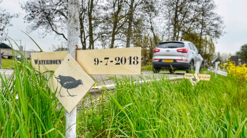 ZWAMMERDAM/AARLANDERVEEN - Een naargeestig gezicht: langs de Ziendeweg zijn zaterdag zo'n 640 kruizen geplaatst. Ieder kruis symboliseert een doodgereden dier op de weg tussen Zwammerdam en Nieuwkoop. Op elk exemplaar is het diersoort geschreven, de datum van overlijden en staat een te scannen QR-code voor meer informatie.